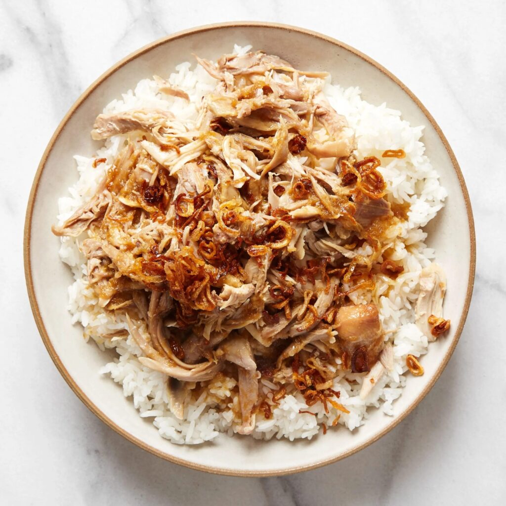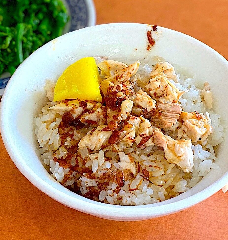 そのすぐ下に、白い文字で「鶏肉飯」が並んでいる。