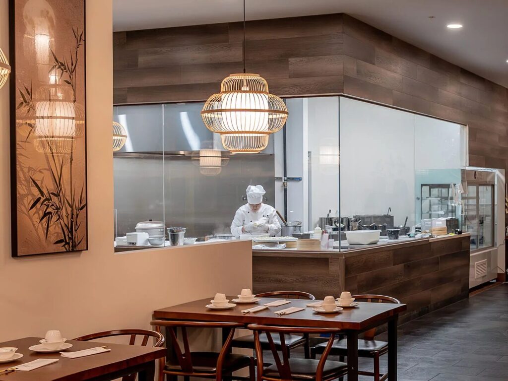 席に案内される前に、ガラス張りの厨房が目に入る。