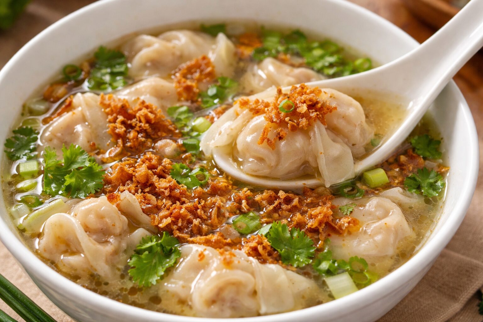 油蔥酥や豚皮のゼラチン質が混ざると、液体はさらに粘度を持つ。